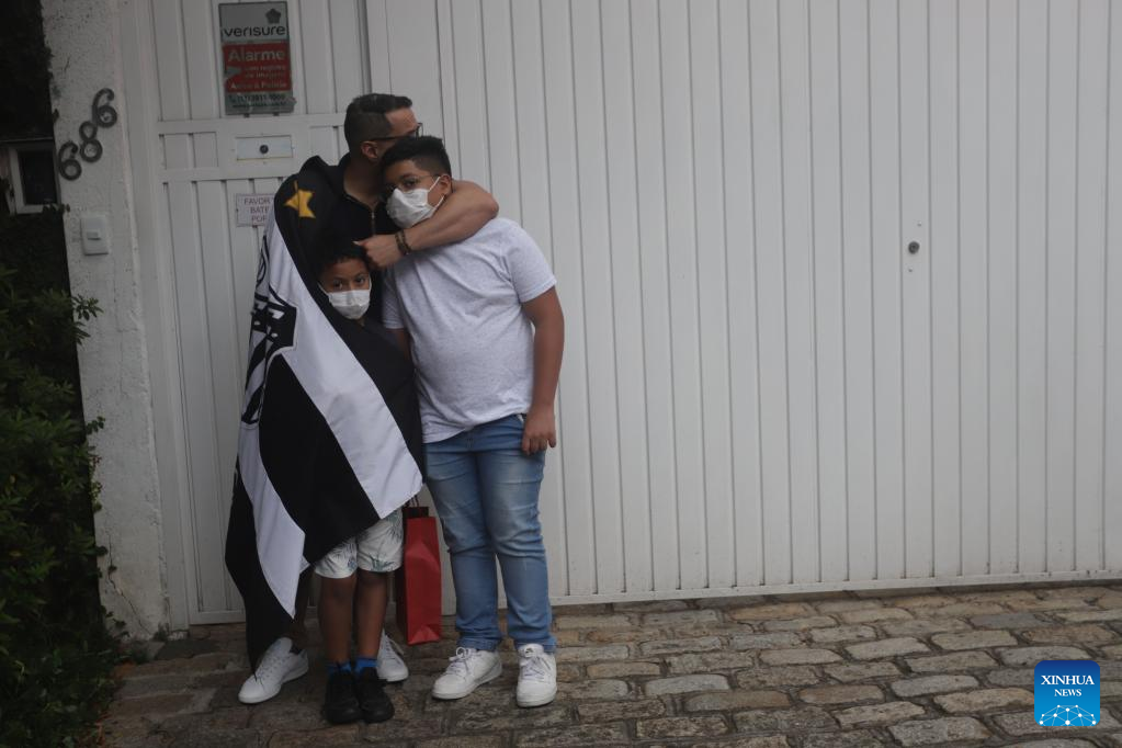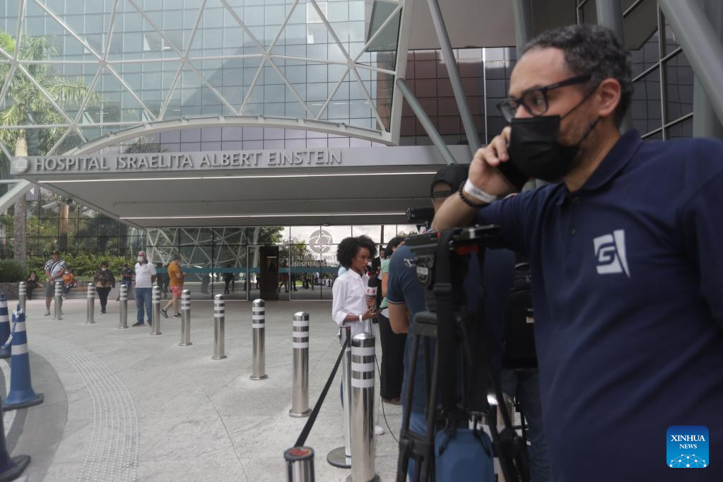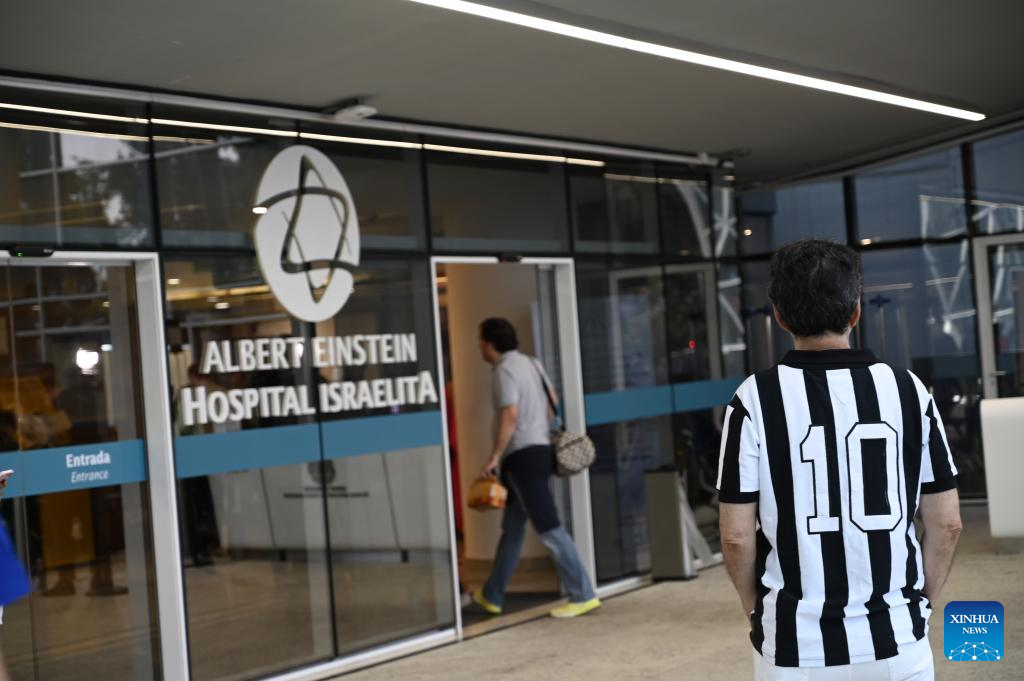 People stand near the Israelita Albert Einstein Hospital where former Brazilian football star Edson Arantes do Nascimento, Pele, died in Sao Paulo, Brazil, on Dec. 29, 2022. (Xinhua/Rahel Patrasso)