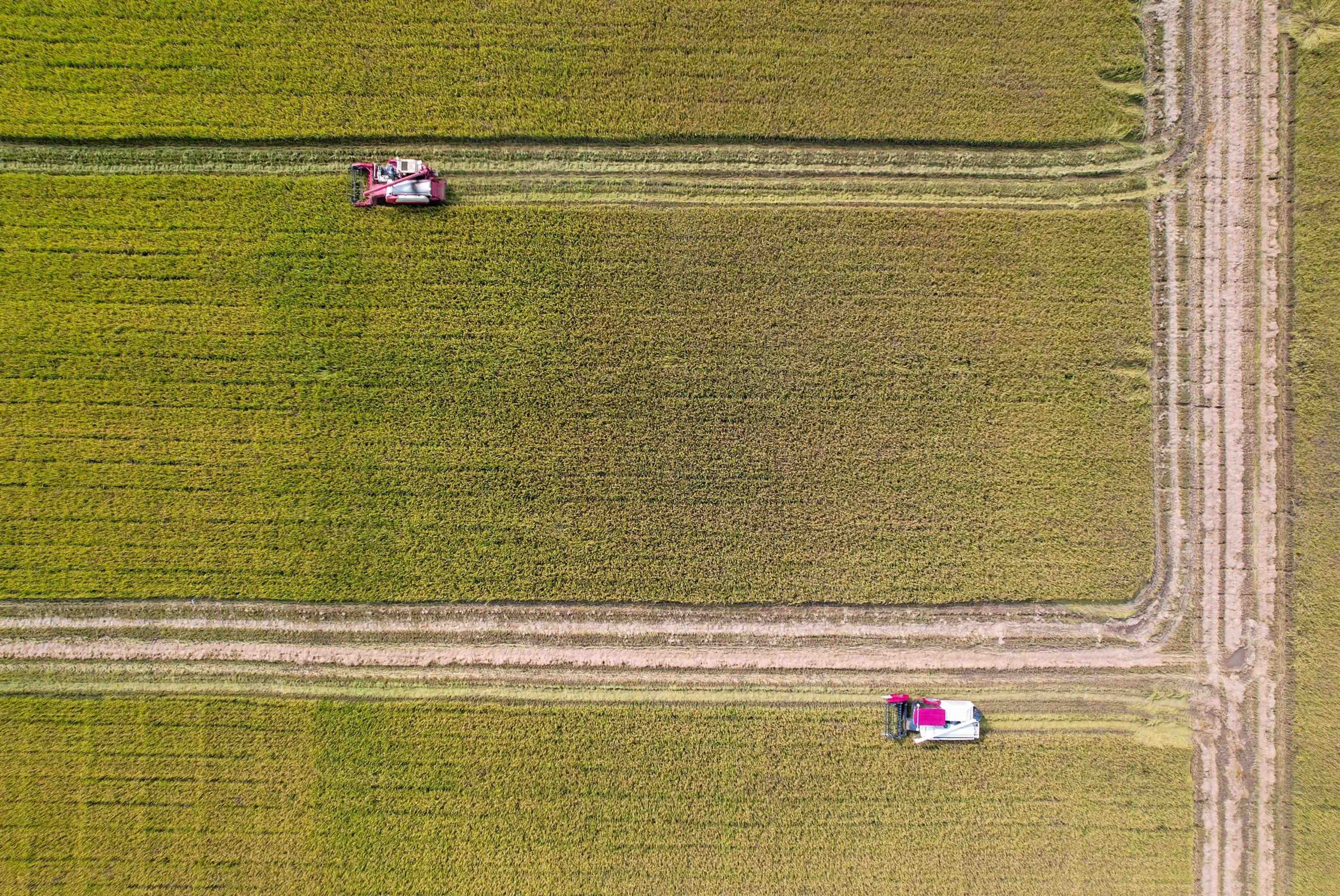 Photo shows two unmanned farming vehicles running at an unmanned farm in Zengcheng district, Guangzhou, south China’s Guangdong Province. (Photo courtesy of the team led by Luo Xiwen, an academician from the South China Agricultural University)