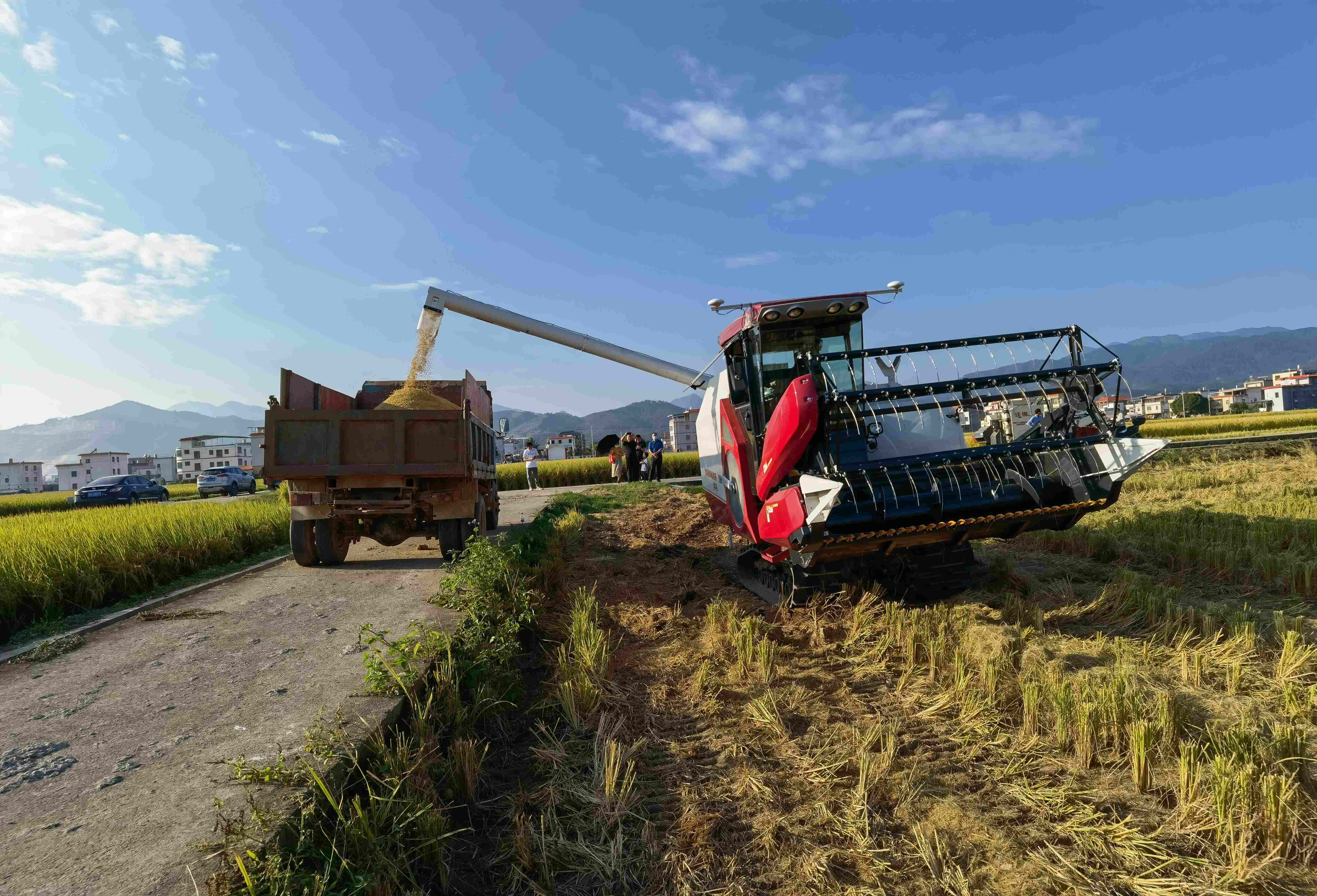 Photo shows an unmanned harvester operating at an unmanned farm in Heyuan, south China’s Guangdong Province. (Photo courtesy of the team led by Luo Xiwen, an academician from the South China Agricultural University)