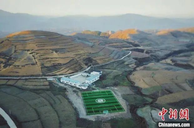 Photo shows a newly built football pitch at Wawu primary school in Liangshan Yi Autonomous Prefecture, southwest China’s Sichuan Province. (Chinanews.com/courtesy of the contributor to the pitch)