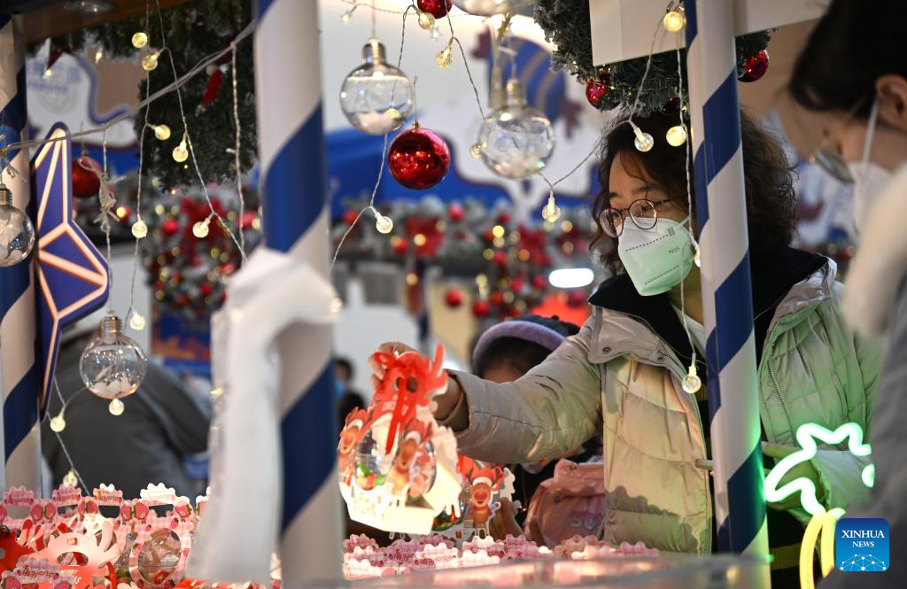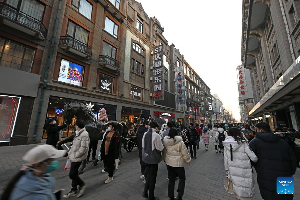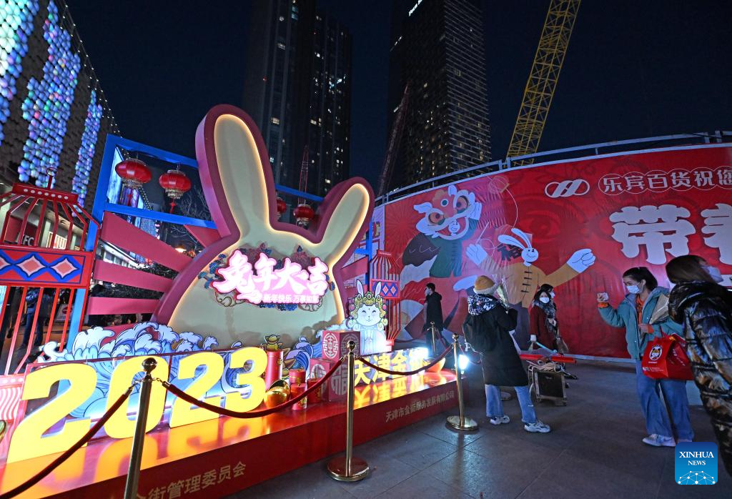 People enjoy their spare time at a commercial area in north China's Tianjin, Dec. 31, 2022, the first day of the New Year holiday. (Xinhua/Zhao Zishuo)