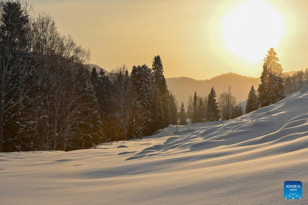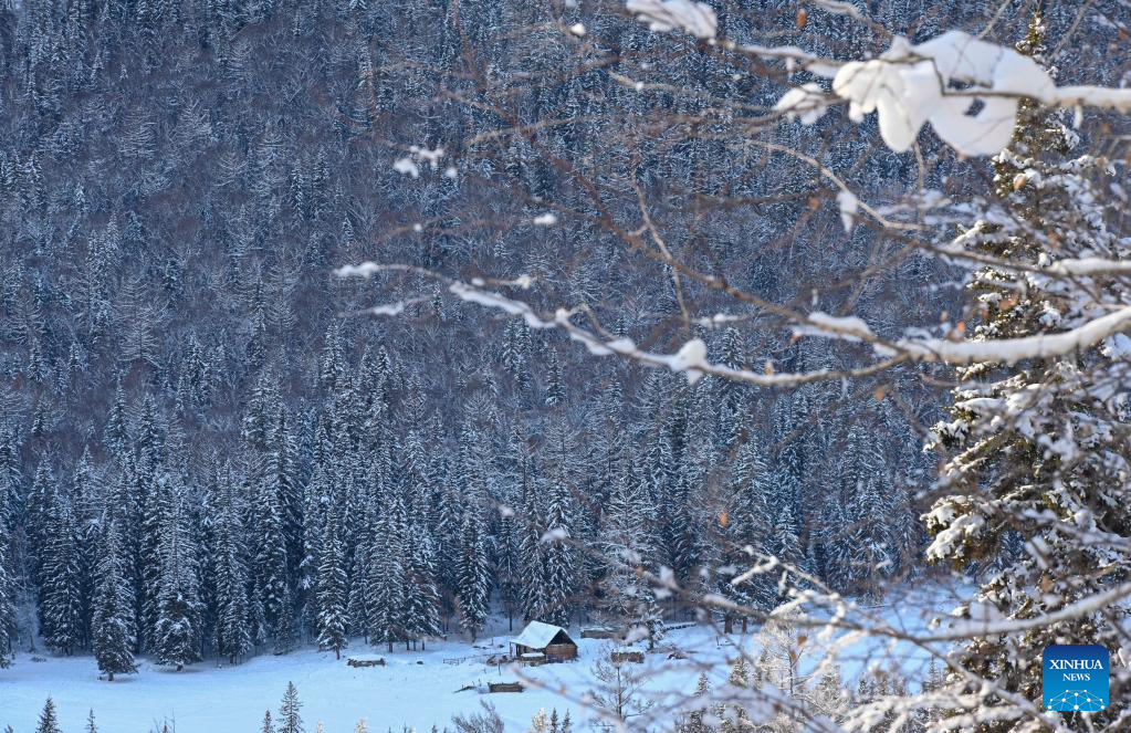 This photo taken on Dec. 30, 2022 shows a winter view of Hemu Village of Kanas scenic spot in Altay, northwest China's Xinjiang Uygur Autonomous Region. (Xinhua/Hao Jianwei)