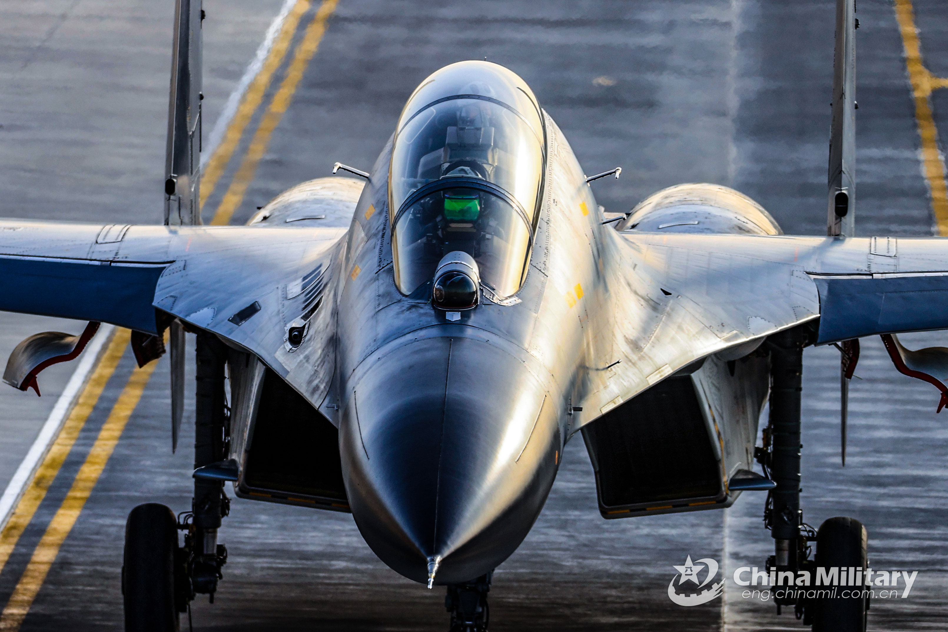 A fighter jet attached to an aviation brigade of the air force taxies on the runway to get ready for a flight training exercise on December 9, 2022. (eng.chinamil.com.cn/Photo by Cui Baoliang)