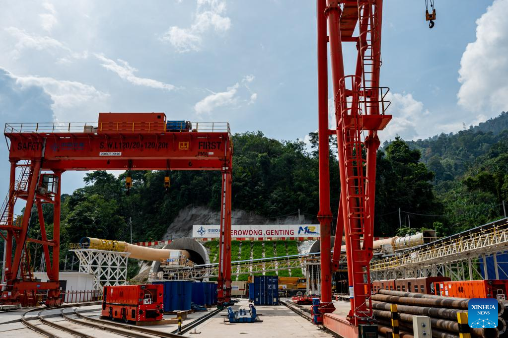 This photo taken on Dec. 29, 2022 shows the construction site of the Genting tunnel of the East Coast Rail Link (ECRL) near Bentong in Pahang state, Malaysia. (Xinhua/Zhu Wei)