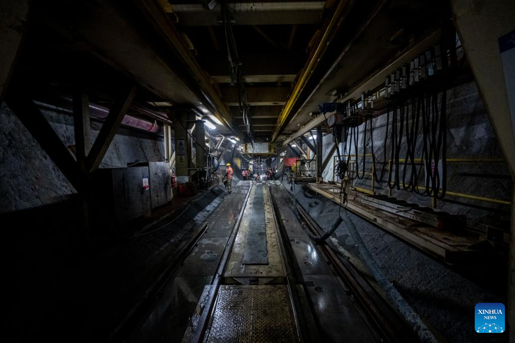 Constructors work at the construction site of the Genting tunnel of the East Coast Rail Link (ECRL) near Bentong in Pahang state, Malaysia, Dec. 29, 2022. (Xinhua/Zhu Wei)
