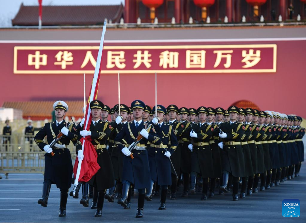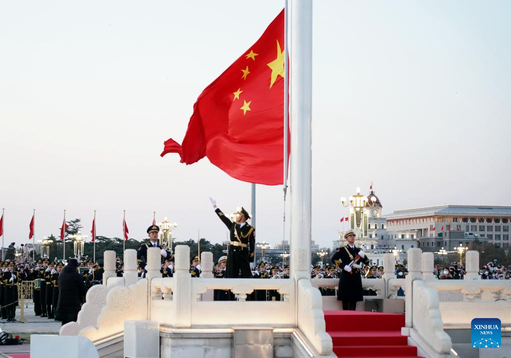 A grand national flag-raising ceremony is held as part of the celebrations for the New Year's Day at the Tian'anmen Square in Beijing, capital of China, Jan. 1, 2023. (Xinhua/Zhang Chenlin)