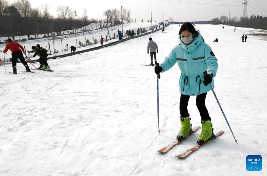 A woman enjoys skiing at a ski resort in Jiyuan, central China's Henan Province, Jan. 2, 2023. (Photo by Miao Qiunao/Xinhua)