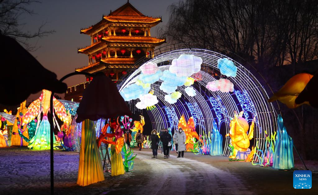 People visit a lantern show in Shenyang, northeast China's Liaoning Province, Dec. 31, 2022. (Xinhua/Yang Qing)