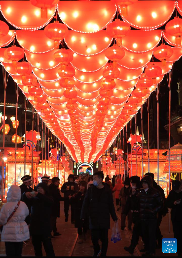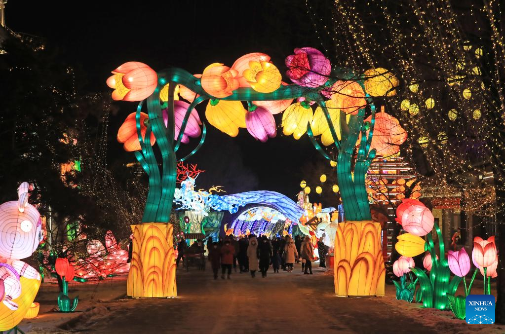 A lantern show to greet the upcoming Spring Festival kicked off in Shenyang, northeast China's Liaoning Province on Dec. 30, 2022. Covering an area of more than 20,000 square meters, the lantern show, with more than 70 sets of large lighting installations illuminating the city's night sky, has become an attraction to visitors.