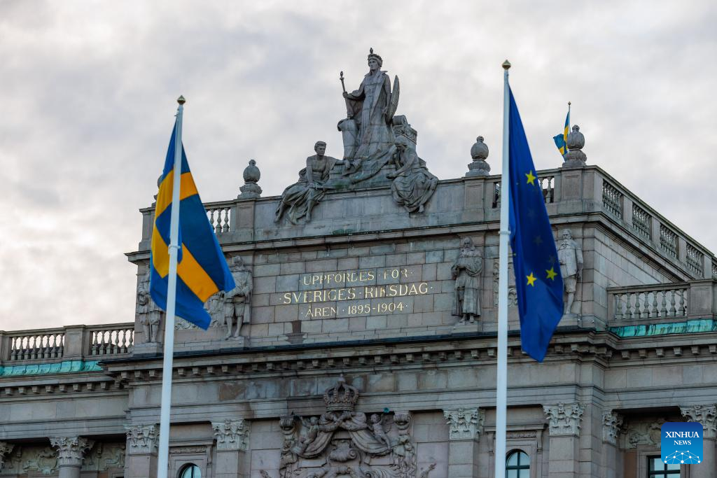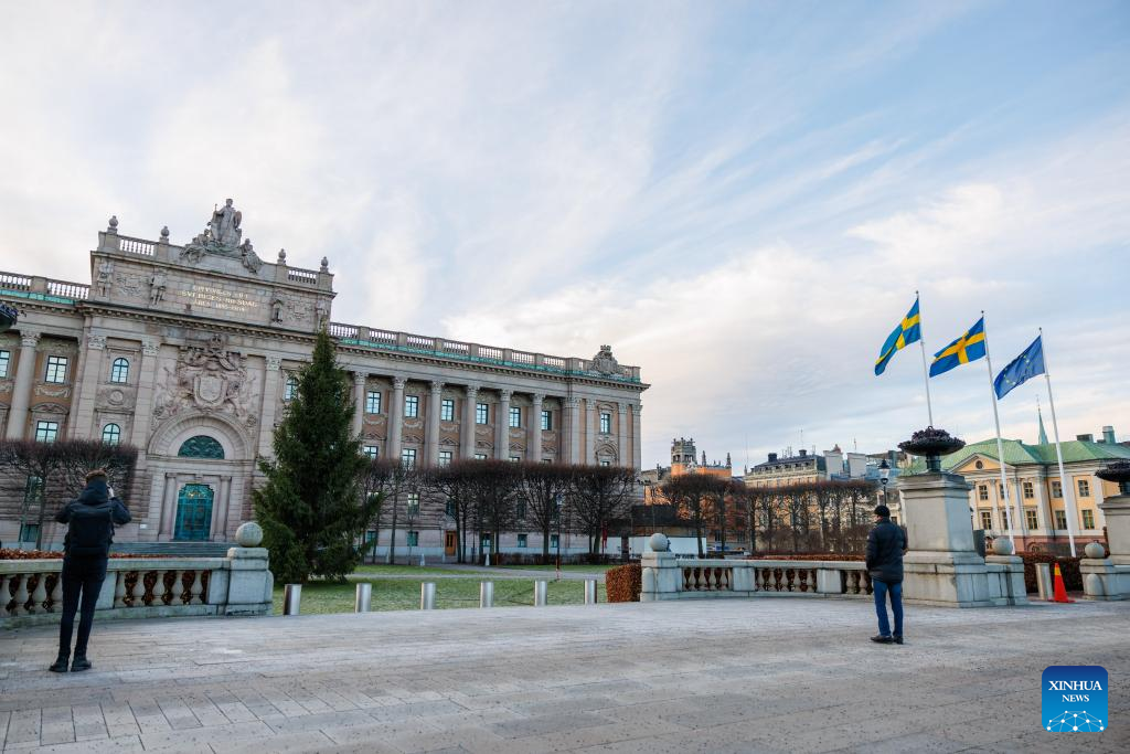 Photo taken on Jan. 1, 2023 shows a building of Swedish Parliament in Stockholm, Sweden. (Photo by Wei Xuechao/Xinhua)
