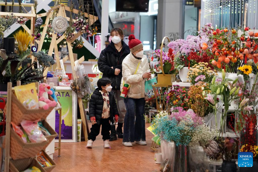 People select flowers at a mall in Beijing, capital of China, Jan. 1, 2023. (Xinhua/Ren Chao)