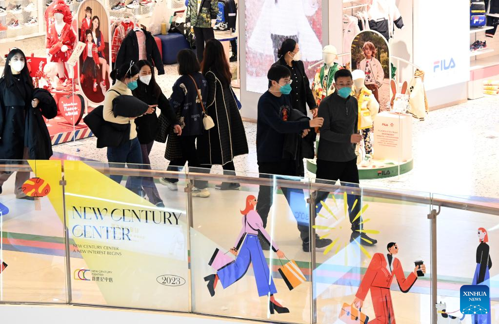 People visit a mall in Handan City, north China's Hebei Province, Jan. 1, 2023. (Photo by Hao Qunying/Xinhua)