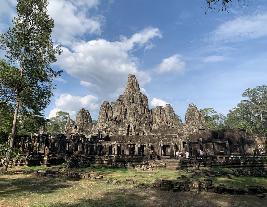 Photo taken on April 5, 2022, shows the Bayon Temple in the Angkor Archeological Park in Siem Reap province, Cambodia. (Photo by Van Pov/Xinhua)