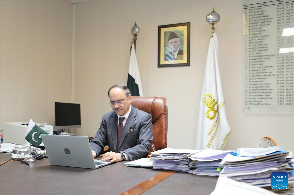 Managing Director of Pakistan Tourism Development Corporation (PTDC) Aftab ur Rehman Rana works in his office in Islamabad, capital of Pakistan, Jan. 3, 2023. (Xinhua/Jiang Chao)