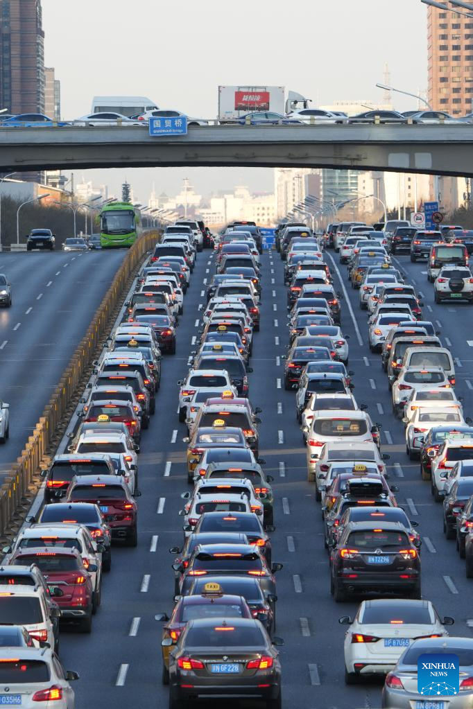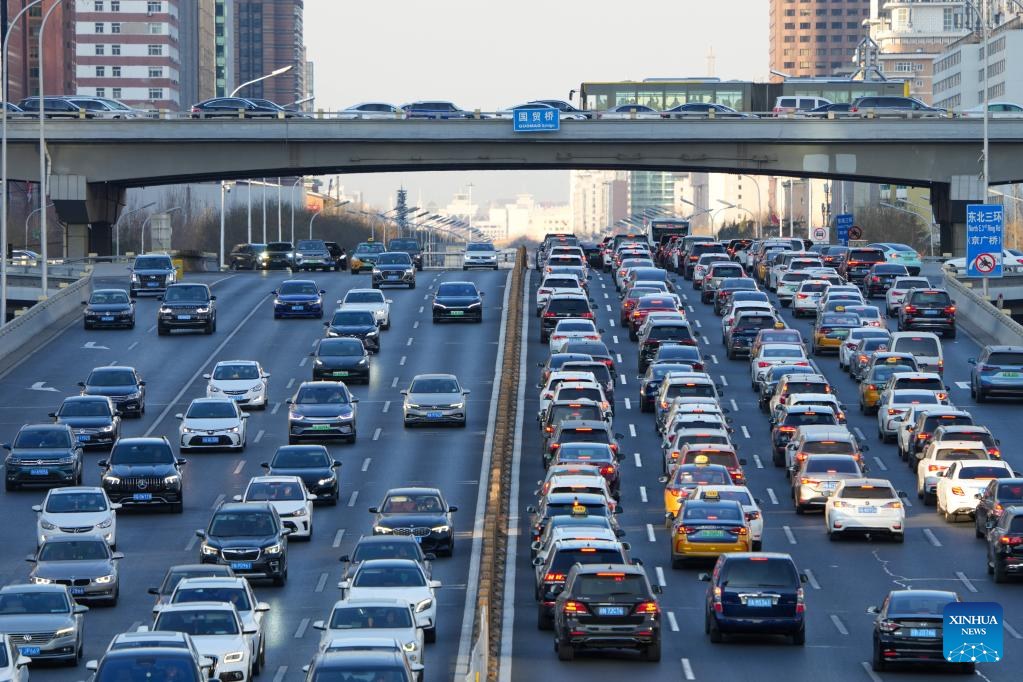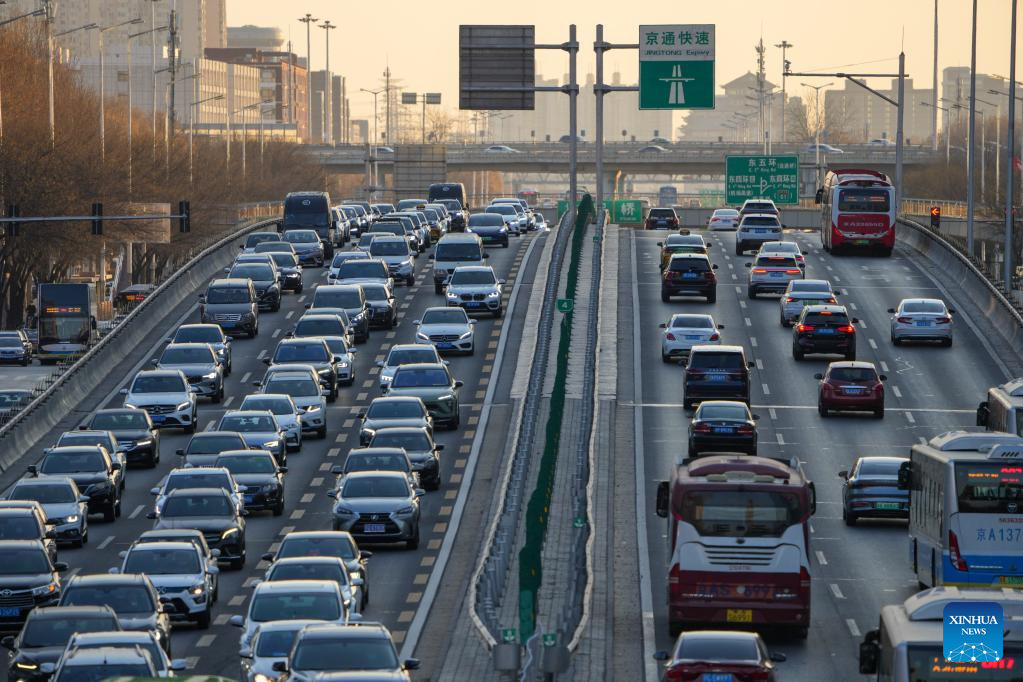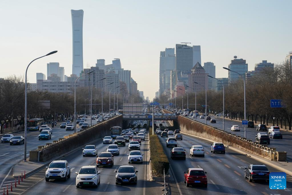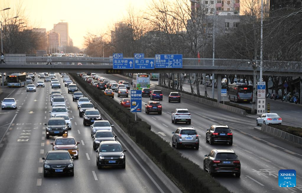 Vehicles run on North Third Ring Road during morning peak hours in Beijing, capital of China, Jan. 3, 2023. (Xinhua/Ren Chao)