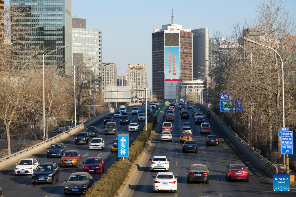 Vehicles run on Jianguo Road in Chaoyang District of Beijing, capital of China, Jan. 3, 2023. (Xinhua/Ju Huanzong)