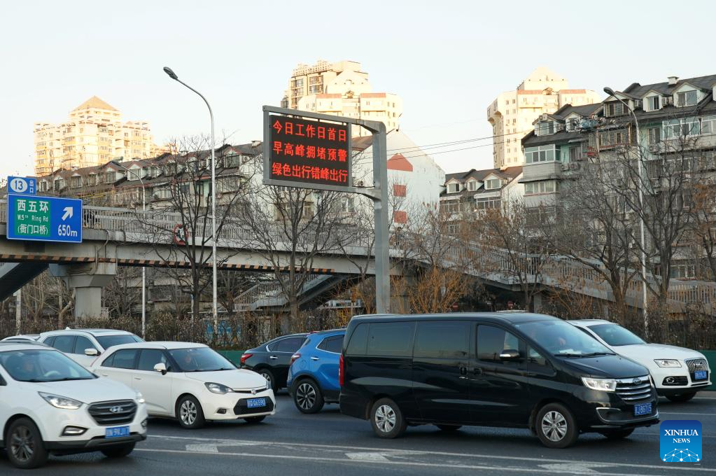 Vehicles run on East Lianshi Road during morning peak hours in Beijing, capital of China, Jan. 3, 2023. (Xinhua/Zhang Chenlin)