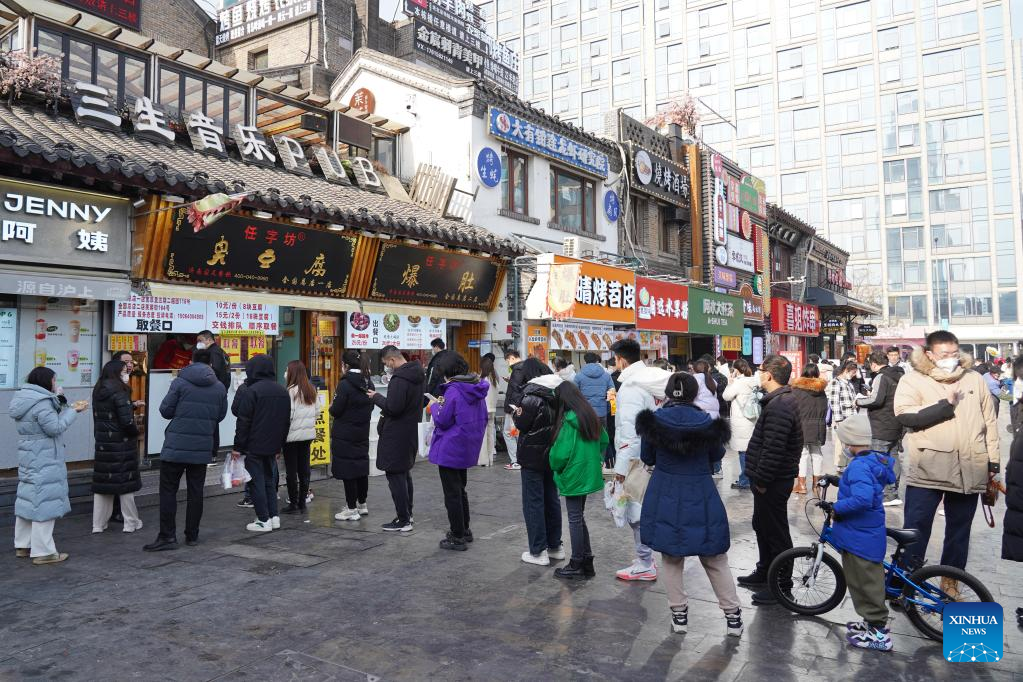 Tourists line up to buy food in Jinan, east China's Shandong Province, Jan. 1, 2023. (Xinhua/Zhu Zheng)