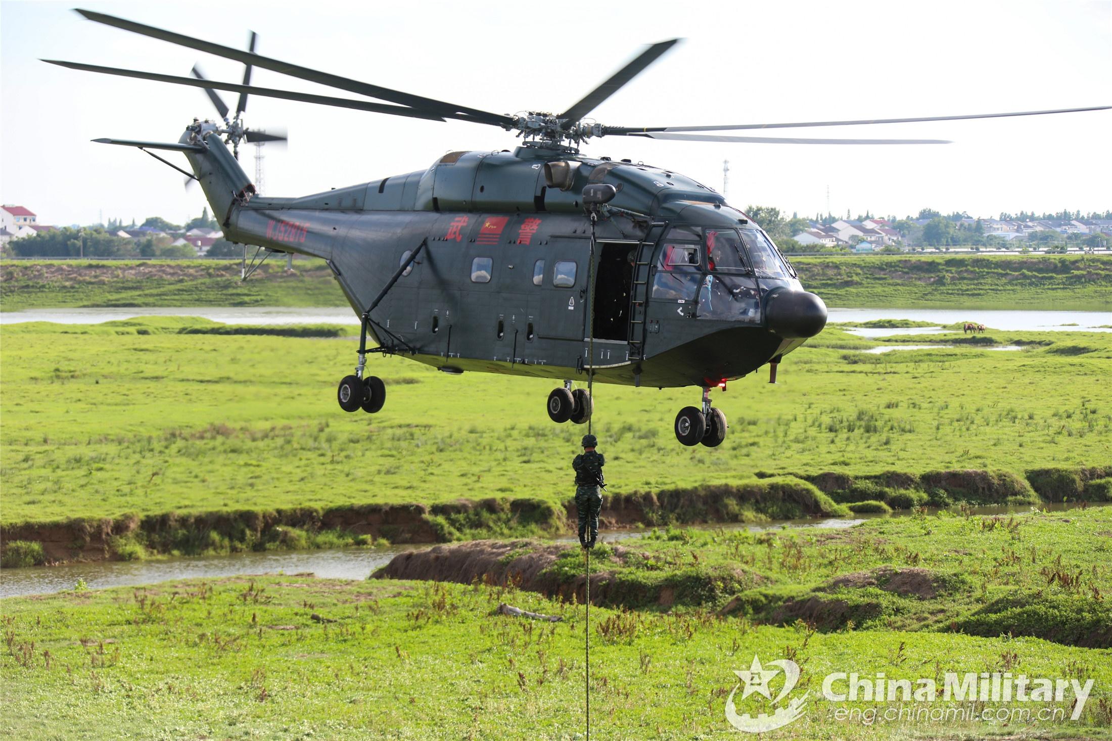 A soldier assigned to a detachment of the 2nd Mobile Corps under the Chinese People's Armed Police Force fast-ropes down from a helicopter during a training exercise on November 25, 2022. (eng.chinamil.com.cn/Photo by Gao Zhebin)