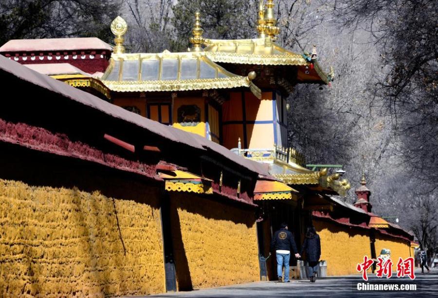 Tourists visit the Norbulingka, a world heritage site, in Lhasa, southwest China's Tibet Autonomous Region, Jan. 3, 2023. (Photo: China News Service/Li Lin)