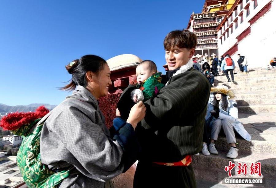 Tourists visit the Potala Palace in Lhasa, southwest China's Tibet Autonomous Region, Jan. 3, 2023. (Photo: China News Service/Li Lin)