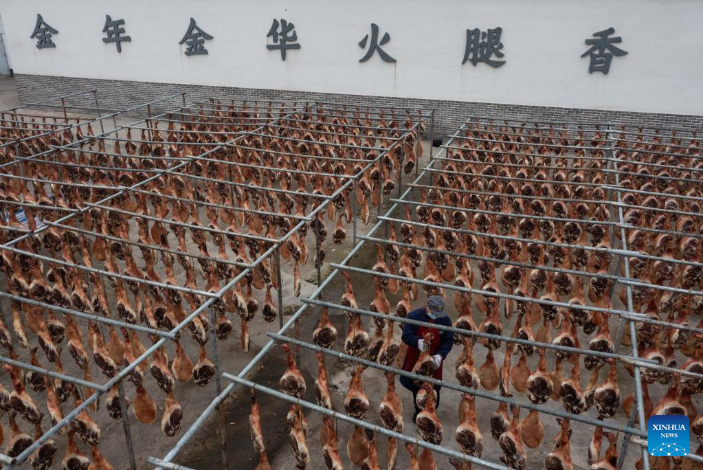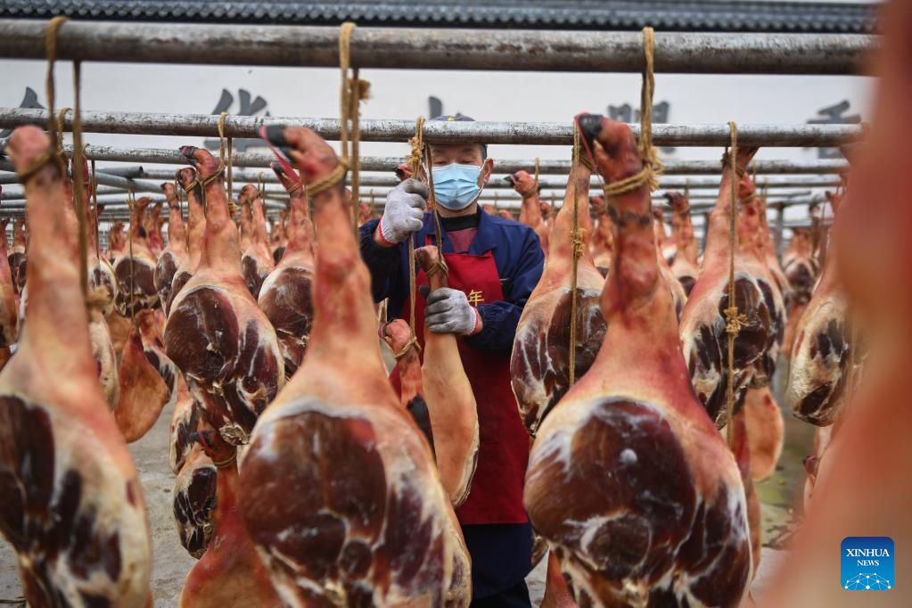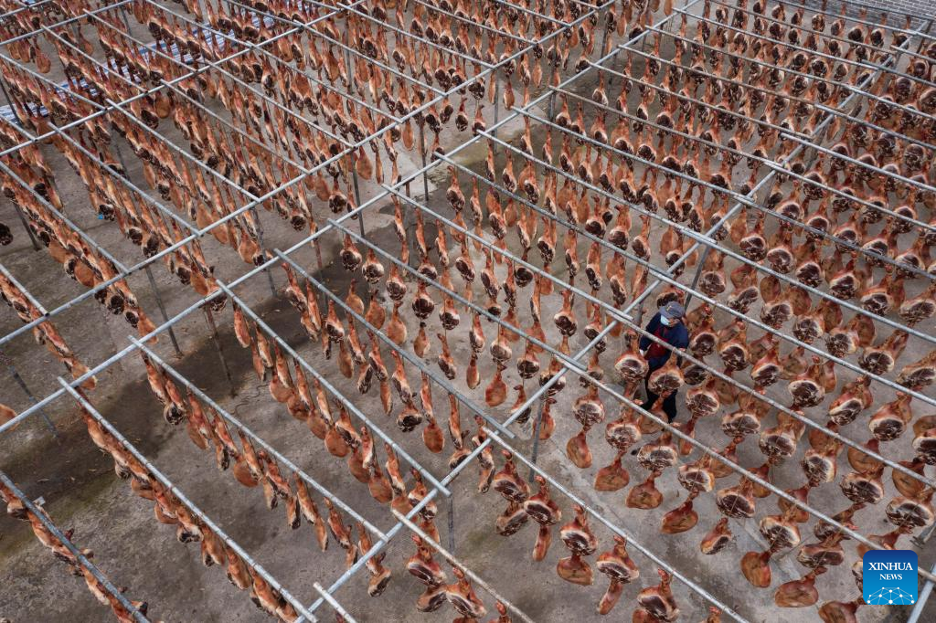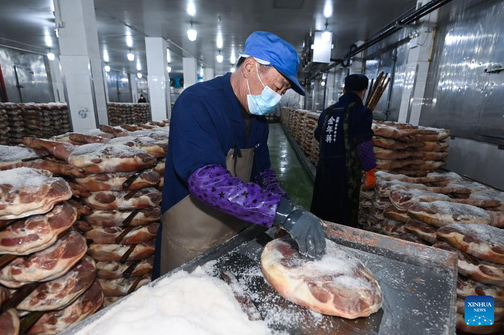 As the Spring Festival approaches, ham-making factories vigorously produce Jinhua ham to meet the demand of festival market in Jindong District of Jinhua City, east China's Zhejiang Province.