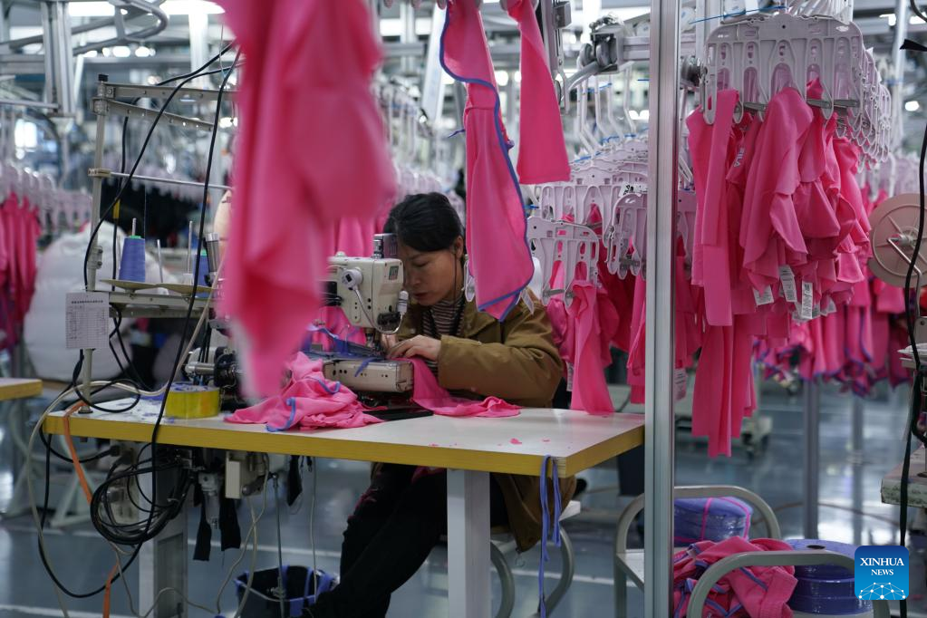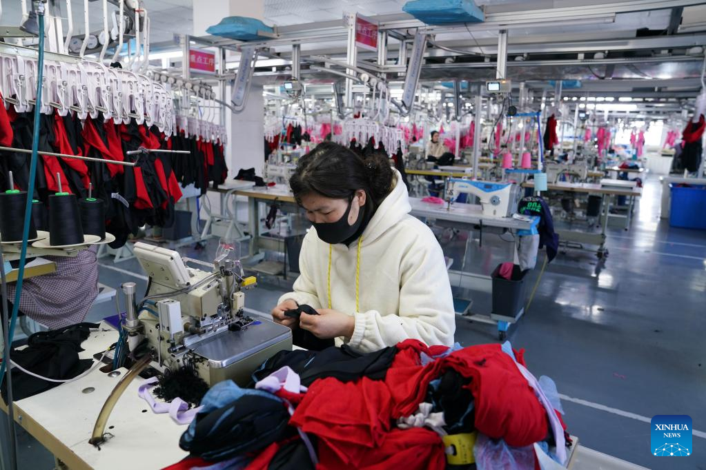 An employee works at a clothing company in Nanchang, east China's Jiangxi Province, Jan. 4, 2023. (Xinhua/Zhou Mi)