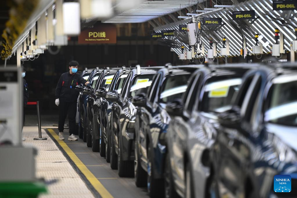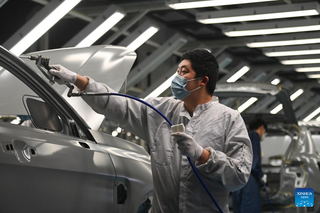 An employee works at an automobile company in Yuyao, east China's Zhejiang Province, Jan. 5, 2023. (Xinhua/Huang Zongzhi)