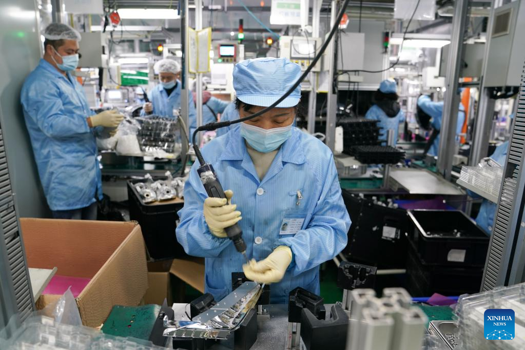 Employees work at an automobile lighting company in Nanchang, east China's Jiangxi Province, Jan. 4, 2023. (Xinhua/Zhou Mi)