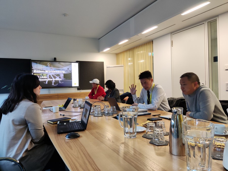 Representatives of enterprises from China's Chengdu City negotiate with the international economic and scientific cooperation agency of Baden-Wurttemberg, in Germany, Dec. 11, 2022. (Xinhua)