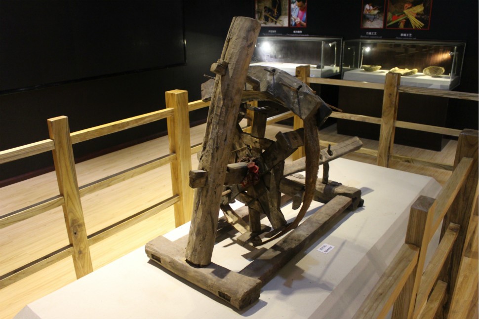 Photo shows a spinning frame exhibited in the eco-museum of Suojia Miao, Yi and Hui township, Liuzhi special region, Liupanshui of southwest China's Guizhou province. (Photo provided by the government of Liuzhi special region)