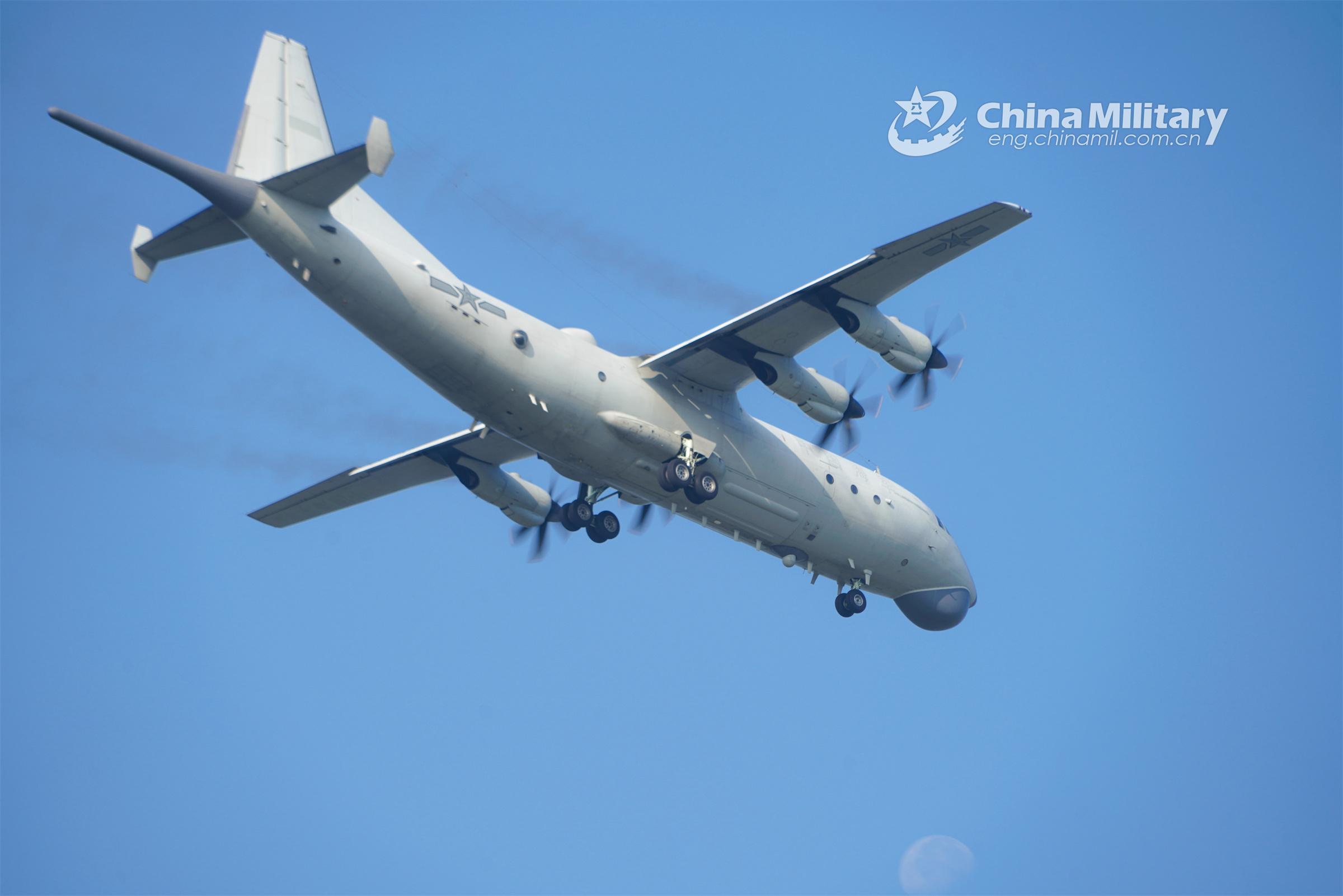 An antisubmarine aircraft attached to an aviation regiment of the naval force under the PLA Southern Theater Command flies to designated air space during an antisubmarine flight training exercise in late December, 2022. (eng.chinamil.com.cn/Photo by Qin Qianjiang)