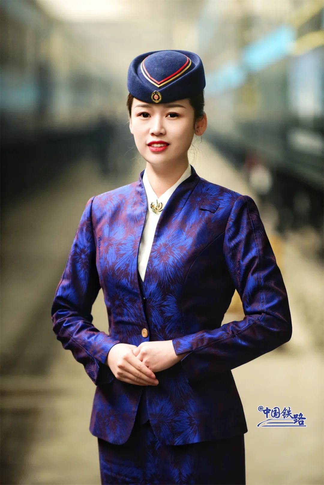 A train attendant in uniform poses for a picture. (Photo/Media Convergence Center of China Railway Urumqi Bureau Group Co., Ltd.)