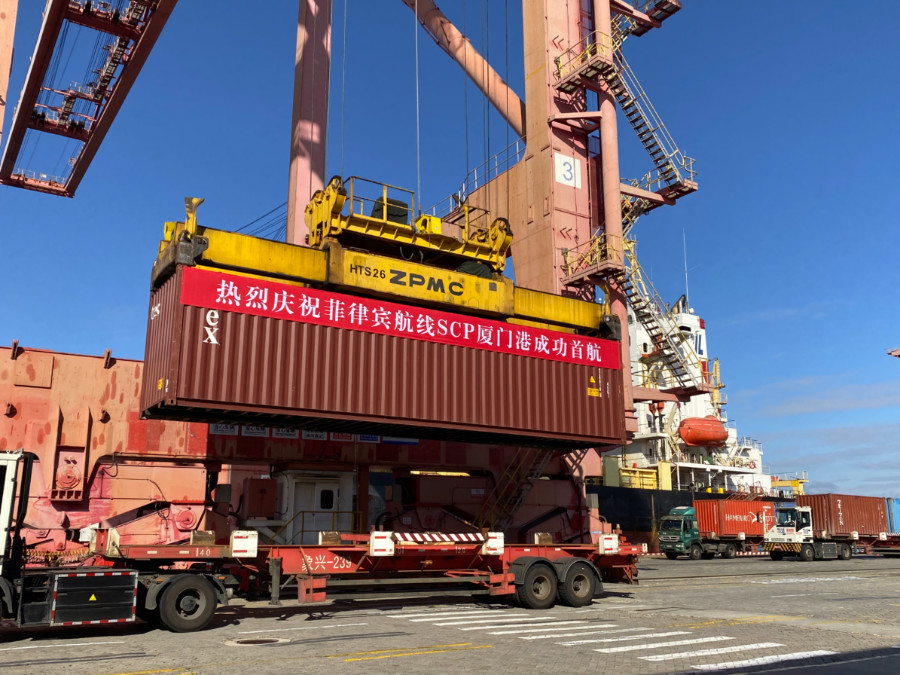Co-launched by Pacific International Lines and Emirates Shipping Line, the SCP route links Xiamen Port with Nansha Port and Shekou Port in south China's Guangdong Province, as well as Manila Port and Cebu Port in the Philippines, which is a member of the Regional Comprehensive Economic Partnership (RCEP).