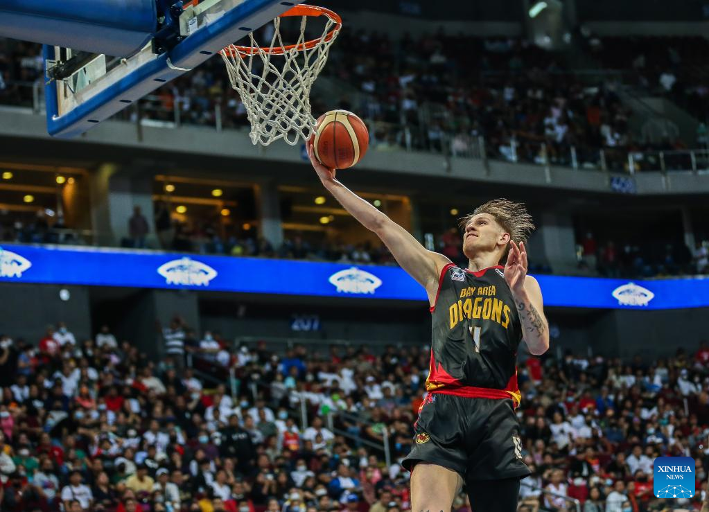 Hayden Joel Blankley of Bay Area Dragons goes for a layup during the game 4 between Barangay Ginebra San Miguel and Bay Area Dragons at the Commissioner's Cup Finals of the Philippine Basketball Association (PBA) in Pasay City, the Philippines, on Jan. 6, 2023. (Xinhua/Rouelle Umali)