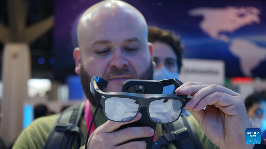 Tamir Berliner, a show attendee from Tel Aviv of Israel, tried on TCL's VR glasses to play games. "It is one of the best VR glasses I tried on for its high-resolution and very immersive experience," he told Xinhua.