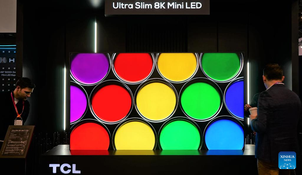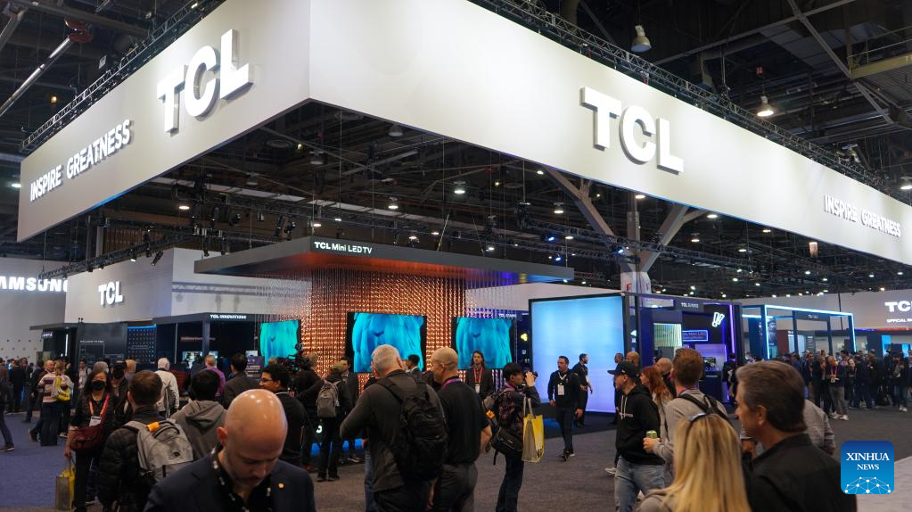 People visit the exhibition area of Chinese company TCL during the 2023 Consumer Electronics Show (CES) in Las Vegas, the United States, Jan. 6, 2023. (Photo by Zeng Hui/Xinhua)