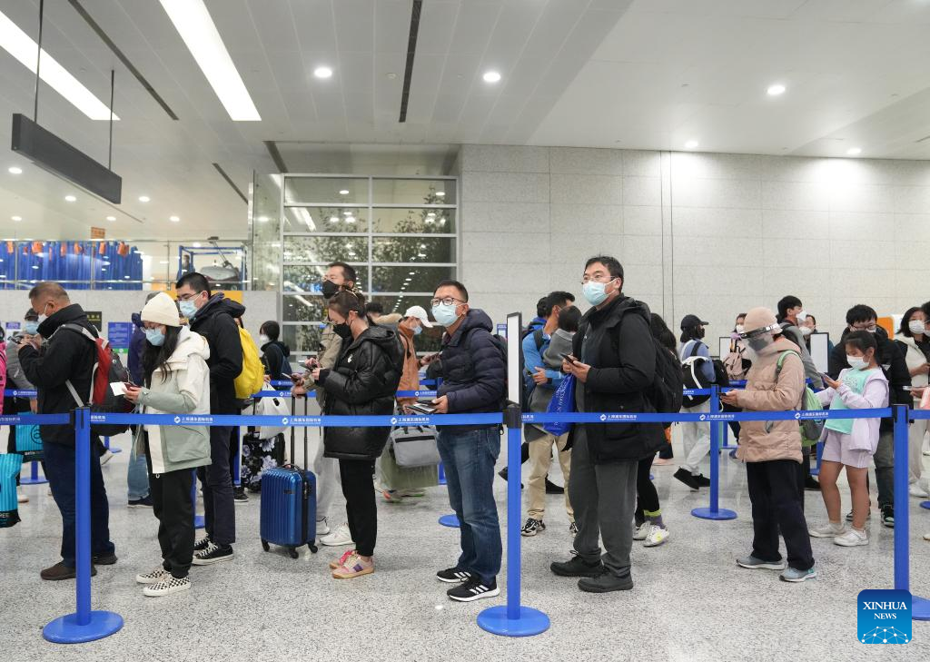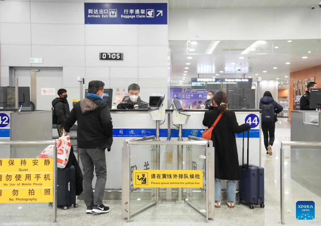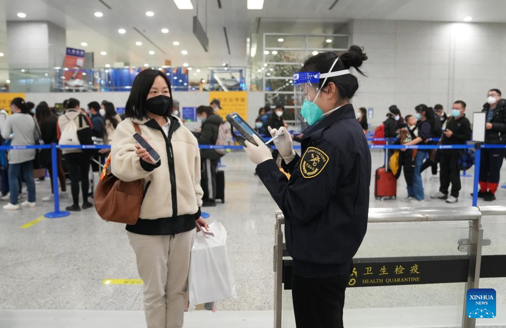 Passengers go through entry procedures at Shanghai Pudong International Airport in east China's Shanghai, Jan. 8, 2023. (Xinhua/Ding Ting)