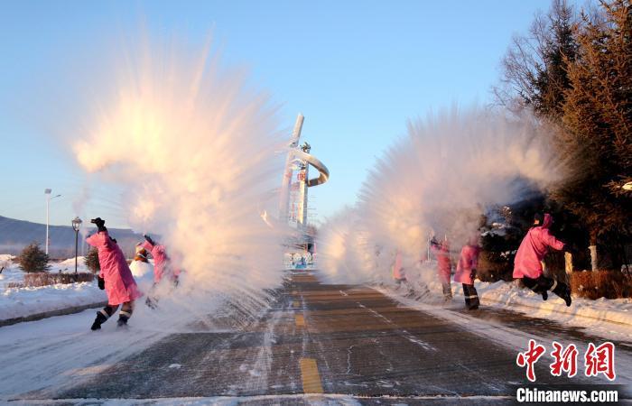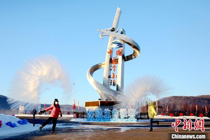 Tourists experience game of throwing water into freezing air in "China's coldest town"