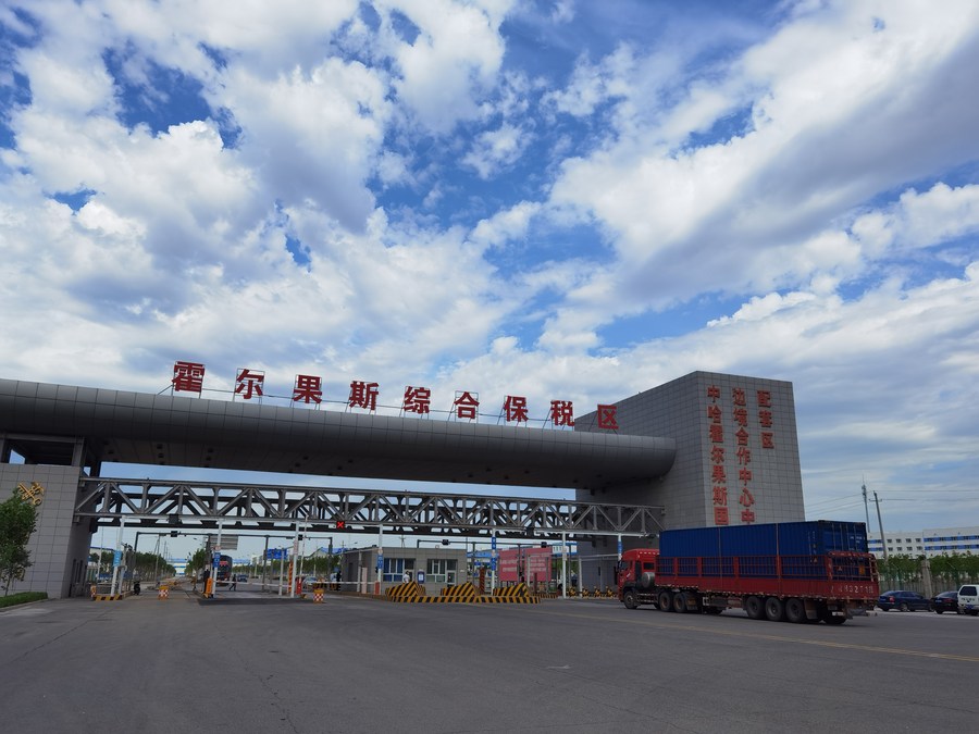 A truck loaded with cross-border e-commerce packages arrives in Horgos Comprehensive Bonded Area, northwest China's Xinjiang Uygur Autonomous Region, June 3, 2021. (Xinhua/Gu Yu)