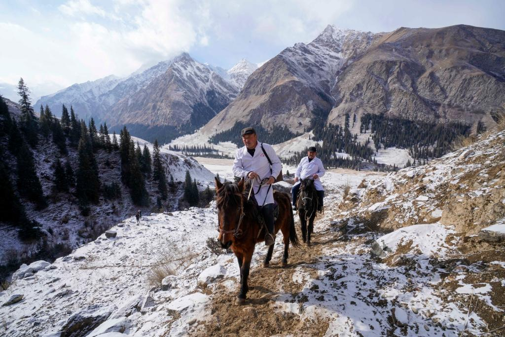 Doctors are on their way visiting herders in the Akyaz Valley in Zhaosu County, northwest China's Xinjiang Uygur Autonomous Region, Jan. 25, 2022. (Xinhua/Zhao Ge)