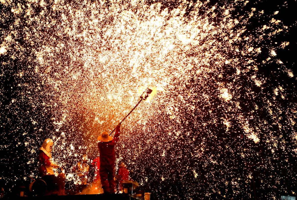 Performers stage molten iron fireworks show in celebration of the Lantern Festival in Luoyang, central China's Henan Province, Feb. 14, 2022. (Xinhua/Hao Yuan)