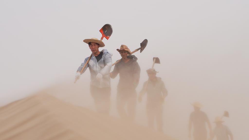 The veterans' efforts are part of a wider desert control campaign of Qiemo County. In nearly a decade, the county has recorded more than 150,000 people participating in its afforestation initiatives, resulting in a "green Great Wall" surrounding Qiemo. (Xinhua/Li Xiang)