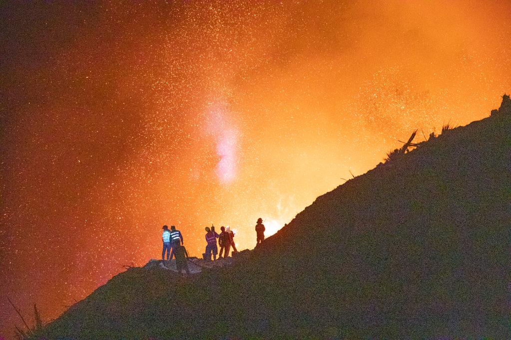 Firefighters put out fire in Jinyun Mountain of Beibei District in Chongqing, southwest China, Aug. 25, 2022. All open flames of the forest fires in Chongqing had been put out on Aug. 26, 2022, with no casualties reported. (Xinhua/Huang Wei)