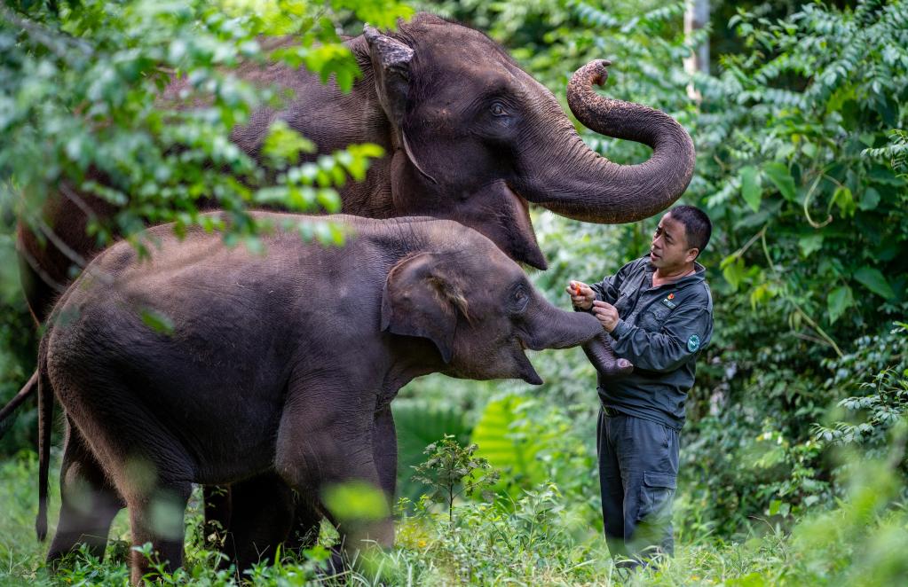The Asian Elephant Breeding and Rescue Center in Xishuangbanna has successfully rescued more than ten wild Asian elephants since its establishment. Staff members here have successfully bred nine calves by way of human-assisted breeding. (Xinhua/Jiang Wenyao)