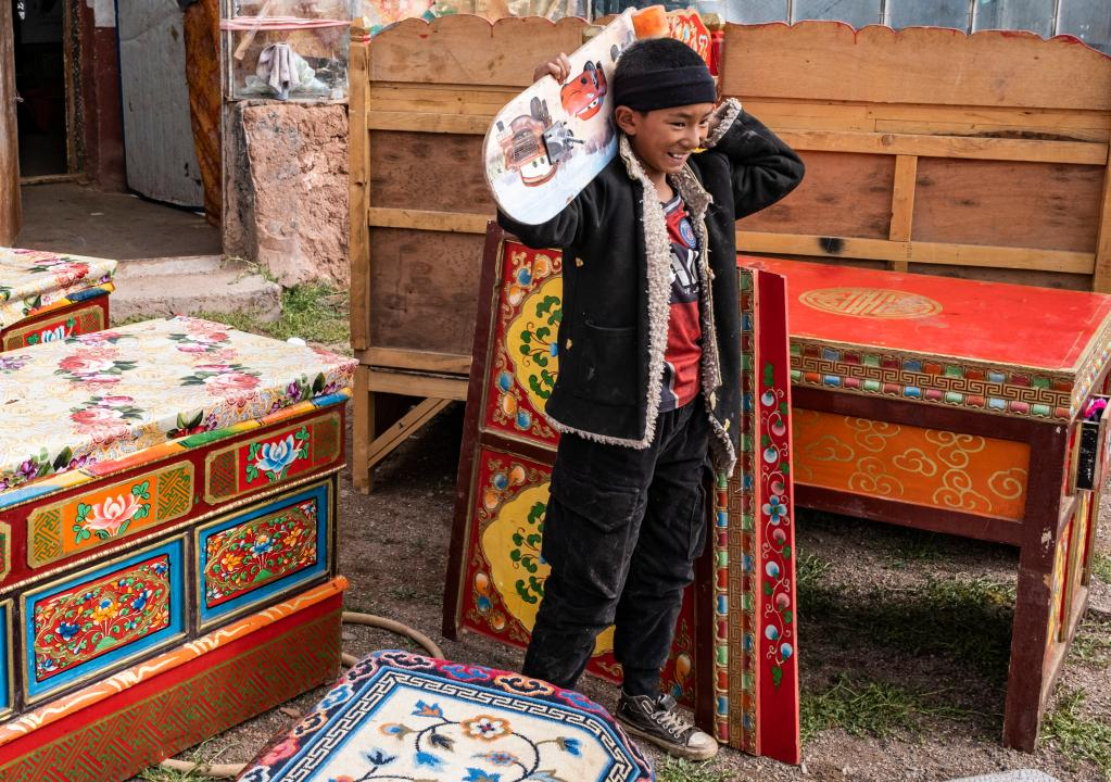 A child prepares to depart from Doima Township of Tsonyi County, southwest China's Tibet Autonomous Region, July 13, 2022.