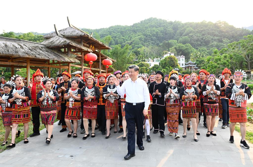 Chinese President Xi Jinping, also general secretary of the Communist Party of China Central Committee and chairman of the Central Military Commission, waves to villagers while visiting Maona, a village in the city of Wuzhishan, during his inspection tour of south China's Hainan Province, April 11, 2022. Xi made an inspection tour of Hainan Province from April 10 to 13, 2022. (Xinhua/Li Xueren)