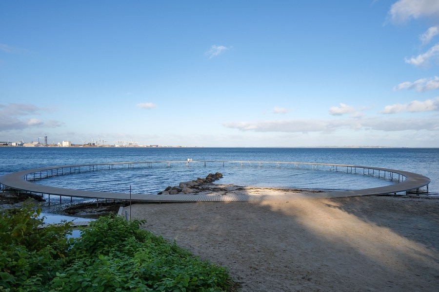 Photo taken on Oct. 11, 2021 shows "The Infinite Bridge" in Aarhus, Denmark. (Xinhua/Zhang Cheng)