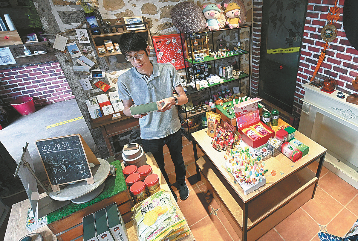 A man from Taiwan stands in the souvenir shop he owns in Pingtan, Fujian province. LIN SHANCHUAN/XINHUA