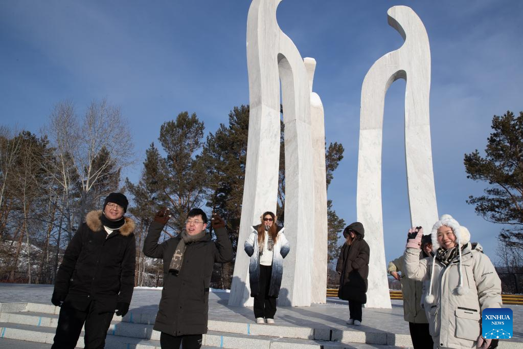 Tourists visit Beiji Village in Mohe, northeast China's Heilongjiang Province, Jan. 10, 2023. (Xinhua/Zhang Tao)